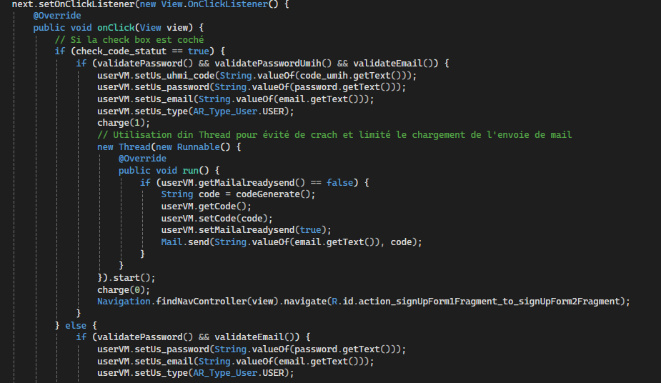 J’ai ensuite développé un système de niveau au sein de l’application permettant de différencier les utilisateurs de l’application et ainsi de donner des récompenses différentes. Pour cela j'ai défini des paliers pour chaque utilisateur et également mis en place le système de points qui allait servir au développement de ce système. Ensuite j'ai réfléchi avec l'équipe à différents types de récompense pouvant être accordée et nous nous sommes mis d'accord sur des réductions dans des restaurants partenaires de l'application. Par la suite de cela j'ai mis en place le système de réduction dans l'application. Ci-dessous une méthode permettant la gestion des différents niveaux de succès.
